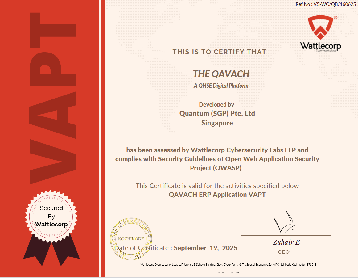 I am pleased to advise you that ๐๐๐ฏ๐๐๐ก 6.0 was certified as compliant with the OWASP standards of VAPT.